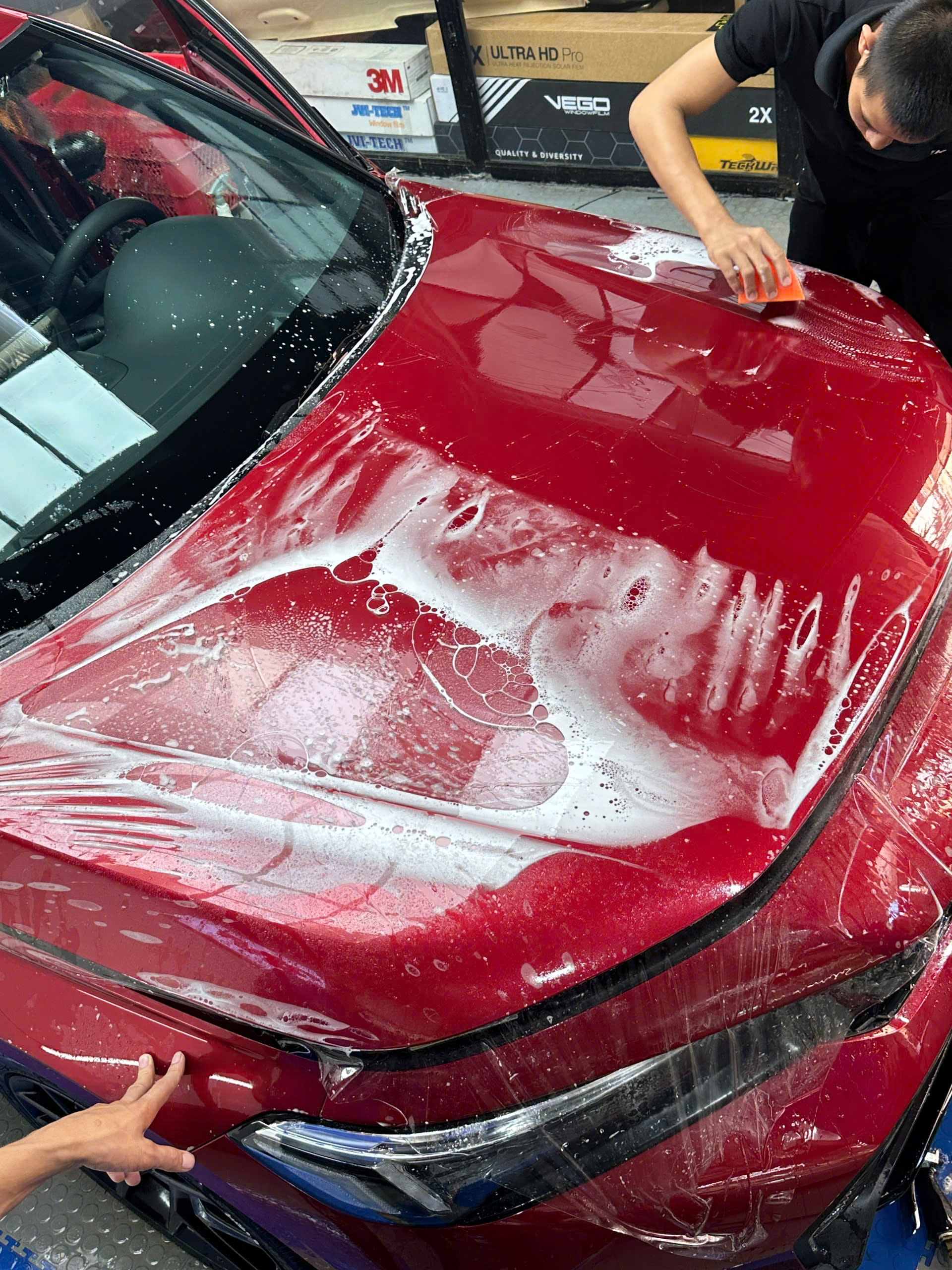 Sau khi hoàn tất, xe được kiểm tra lại toàn bộ mép film, độ bám dính và độ phẳng của bề mặt.