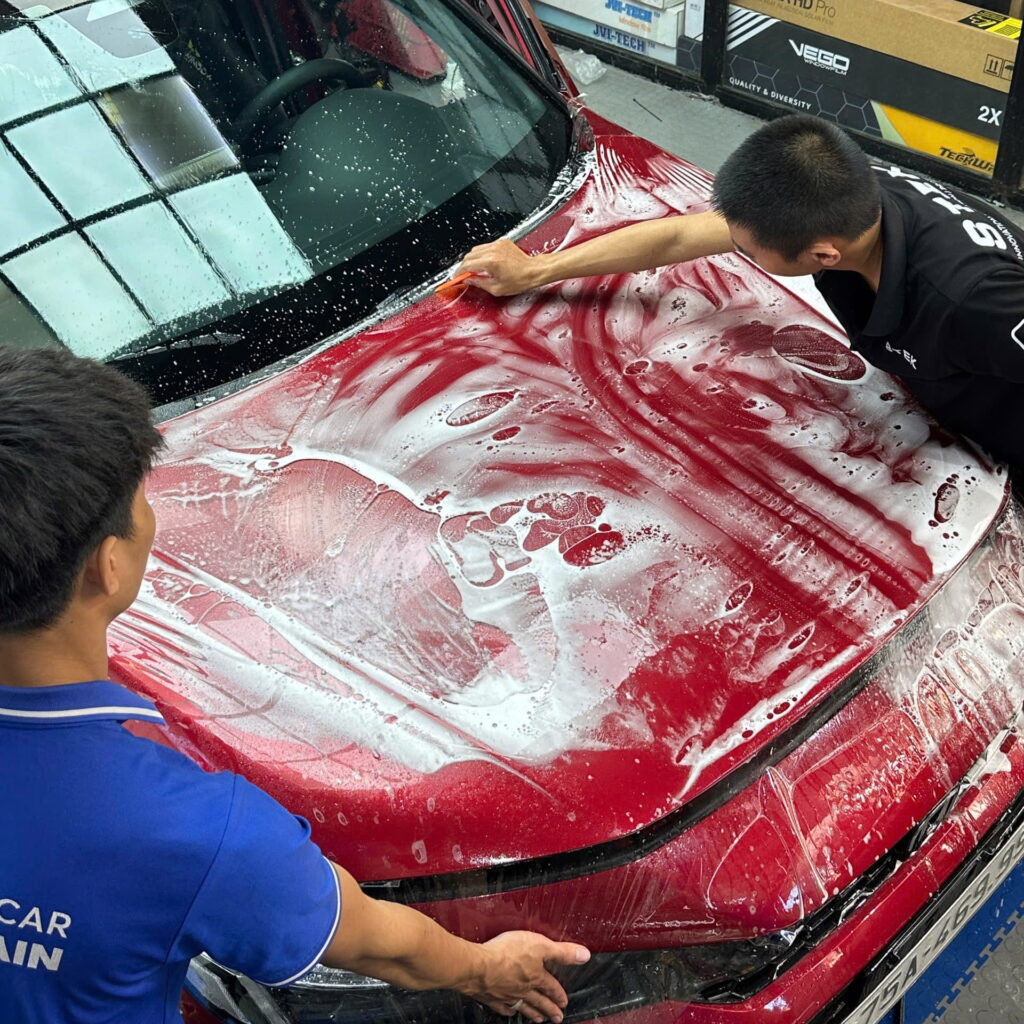 Để lớp PPF bền và đẹp, quan trọng nhất vẫn là cách thi công. Tại NhatWash, mỗi xe đều được làm theo các bước rõ ràng, không làm ẩu hay rút gọn công đoạn.